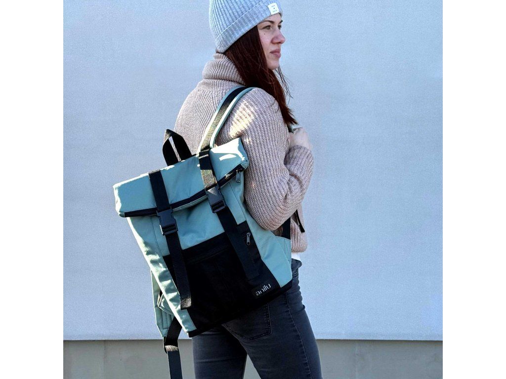 Praktický rolovací design ti umožní upravit velikost batohu podle toho, co zrovna neseš – ať už pár nezbytností, nebo celý denní náklad.
