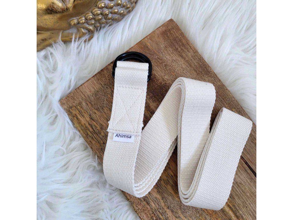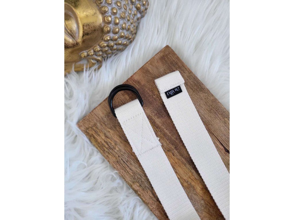 Popruh z pevné bavlny s kovovým kroužkem je pomocníkem při jógových pozicích, protažení nebo jemném posilování. Ušitý ručně, s důrazem na kvalitu a jednoduchost.